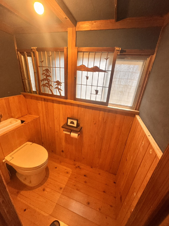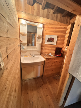 トイレは簡易水栓、給湯器は焼却兼用ボイラー(薪と灯油)。